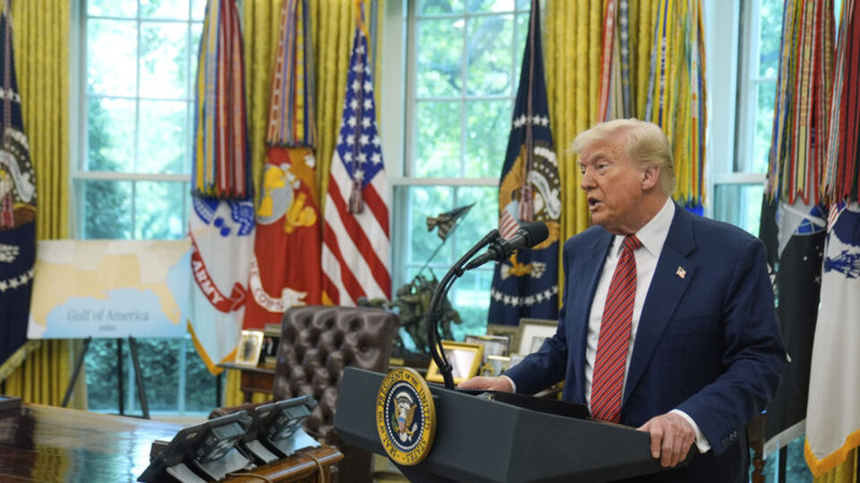 ABD Başkanı Trump, İngiltere ile vardıkları ticaret anlaşmasını kamuoyuna açıklamak için Oval Ofis'te düzenlediği basın…